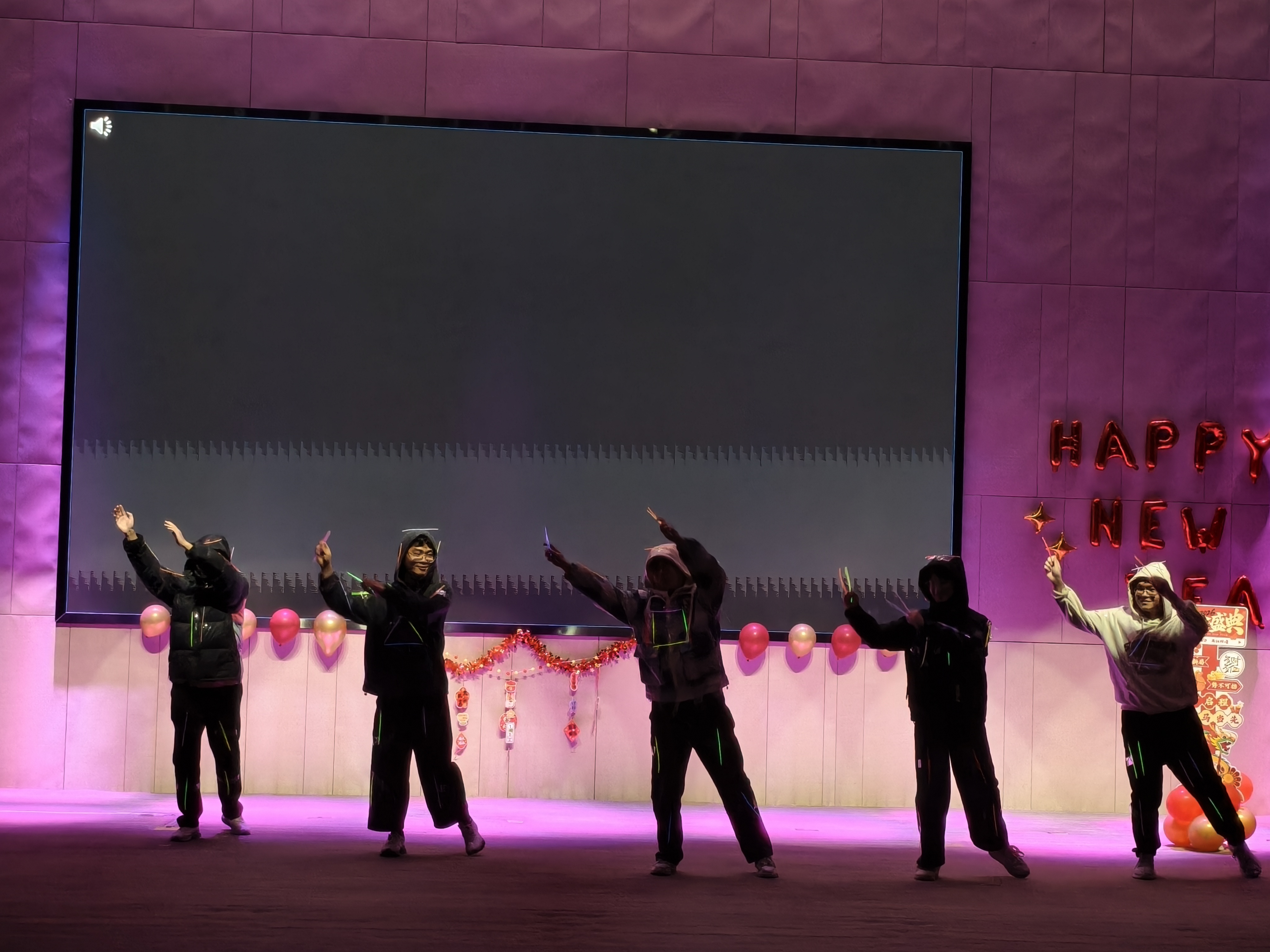 第一篇章中,动感十足的《荧光舞》在光影流转间尽显青春活力,舞步灵动轻快,瞬间点燃现场氛围;歌曲《假如爱有天意》旋律婉转深情,余音绕梁间打动人心;脱口秀《找工作》以贴近学子生活的幽默表达引发全场共鸣,妙语连珠中满是欢声笑语。