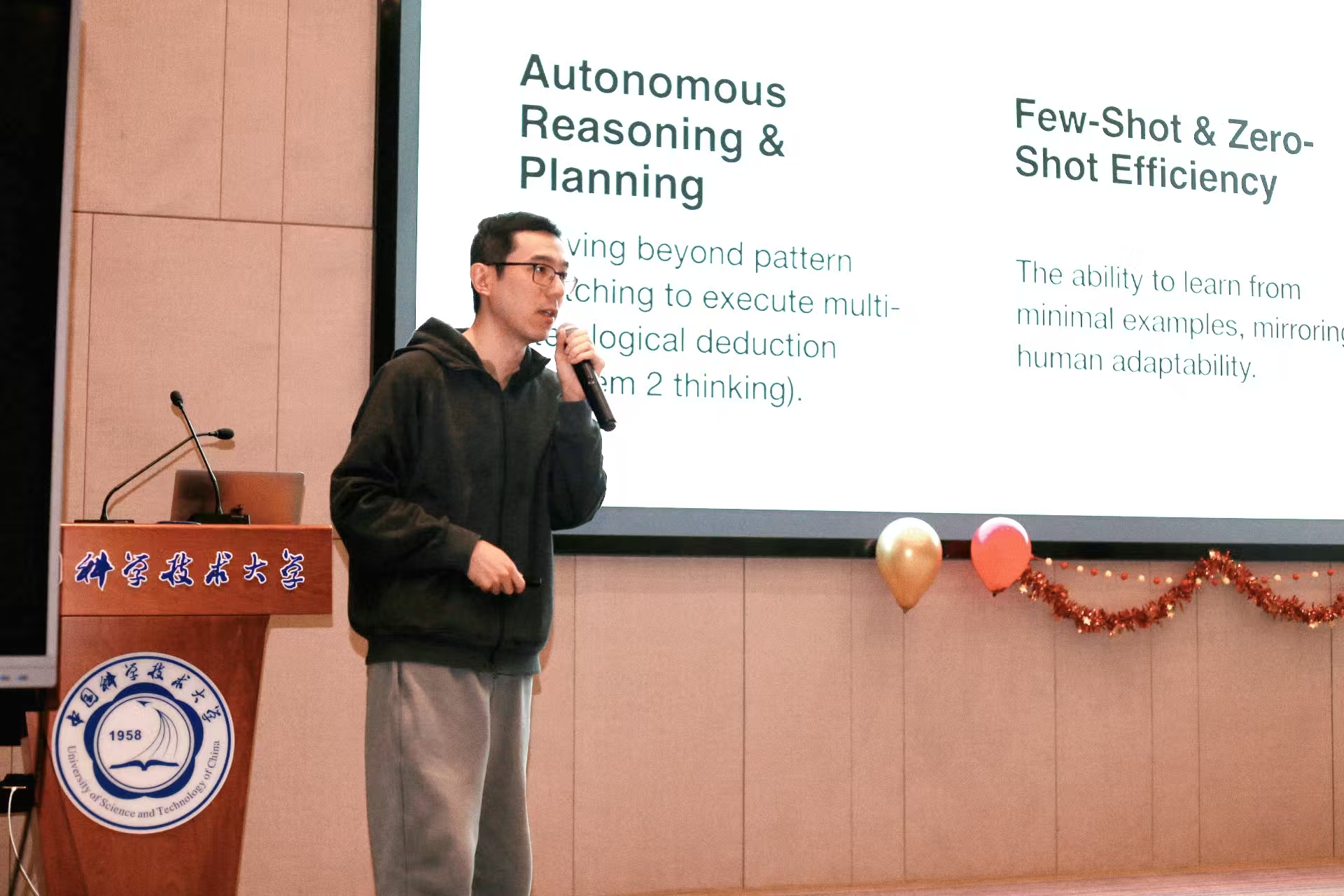 随后,刘浩翔副研究员带来了题为 “From General to Medical AI, Current Status, Challenges, and Opportunities” 的主题分享。兼具学界深厚积淀与工业界实战经验的他,聚焦通用 AI 向医疗 AI 转型的现状、挑战与机遇,从技术逻辑、应用场景、行业痛点等多维度展开论述,既有对技术瓶颈的理性分析,也不乏对未来发展机遇的前瞻思考。值得一提的是,刘老师即将正式入职实验室,此次分享亦是与同学们的提前见面,现场氛围格外亲切融洽。